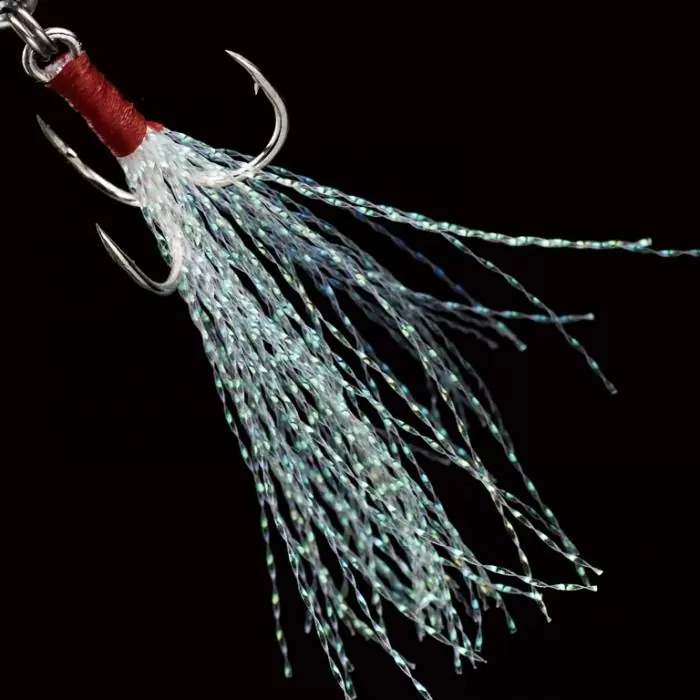El anzuelo trasero con oropel crea un movimiento de natación serpenteante similar al de un pececillo articulado, y su brillo natural atrae a los basses. Además, hace que la forma de la estela sea más natural.